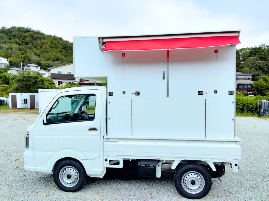おしゃれなオーニング設置の軽トラキッチンカー出荷