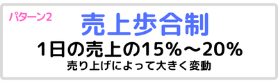 ・「売上歩合制」売上の15%~20%が相場
