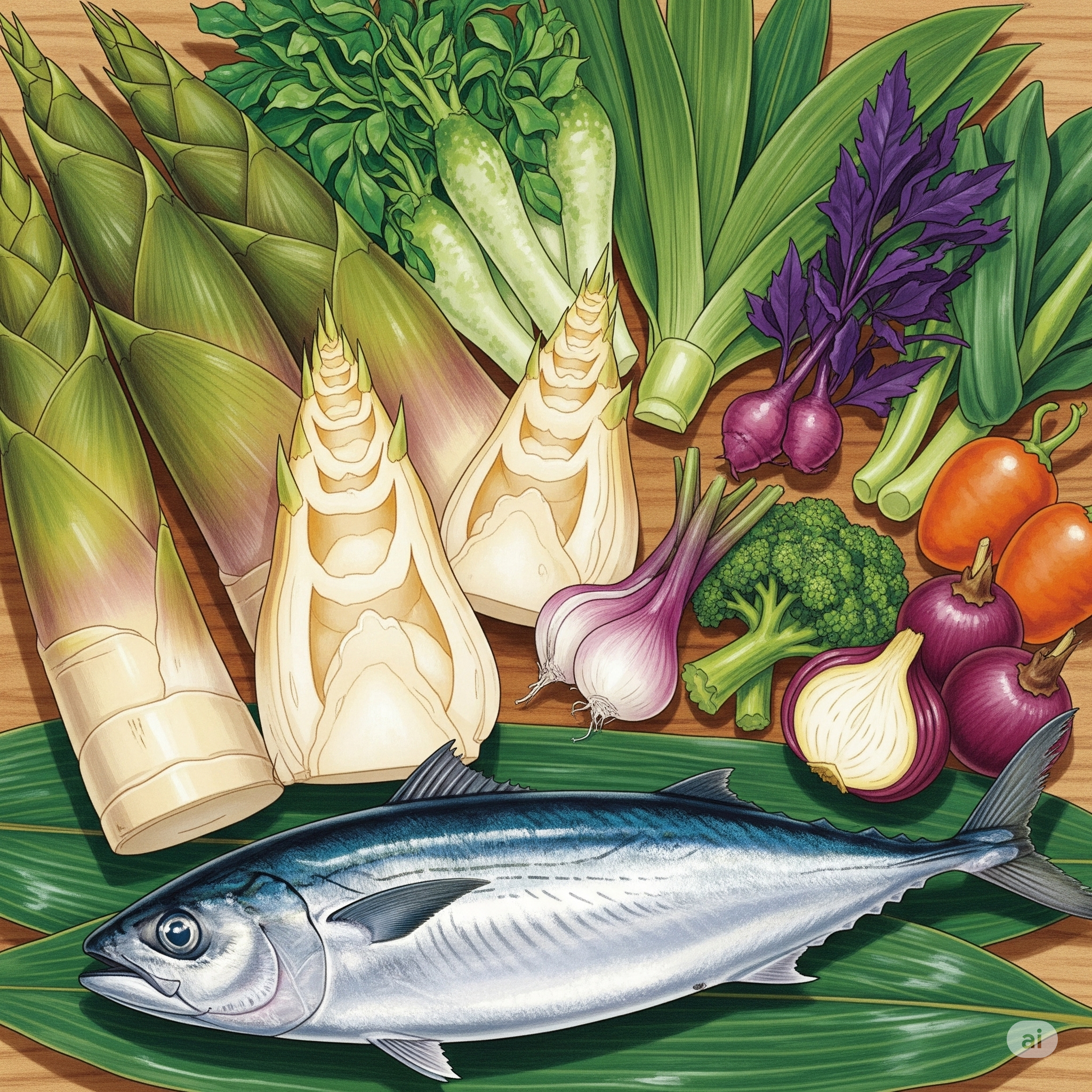 5月は新茶、山菜、たけのこ、初鰹など旬の素材が豊富。